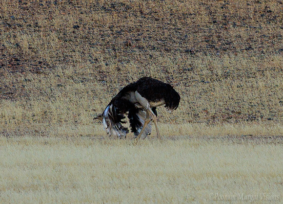 Ostrich Mating in the evening at the sand dunes, Sossusvlei, Namibia